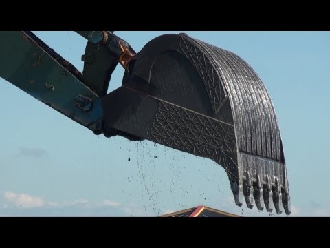 Wielka koparka pogłębia wejście do portu w Darłówku czerwiec 2011